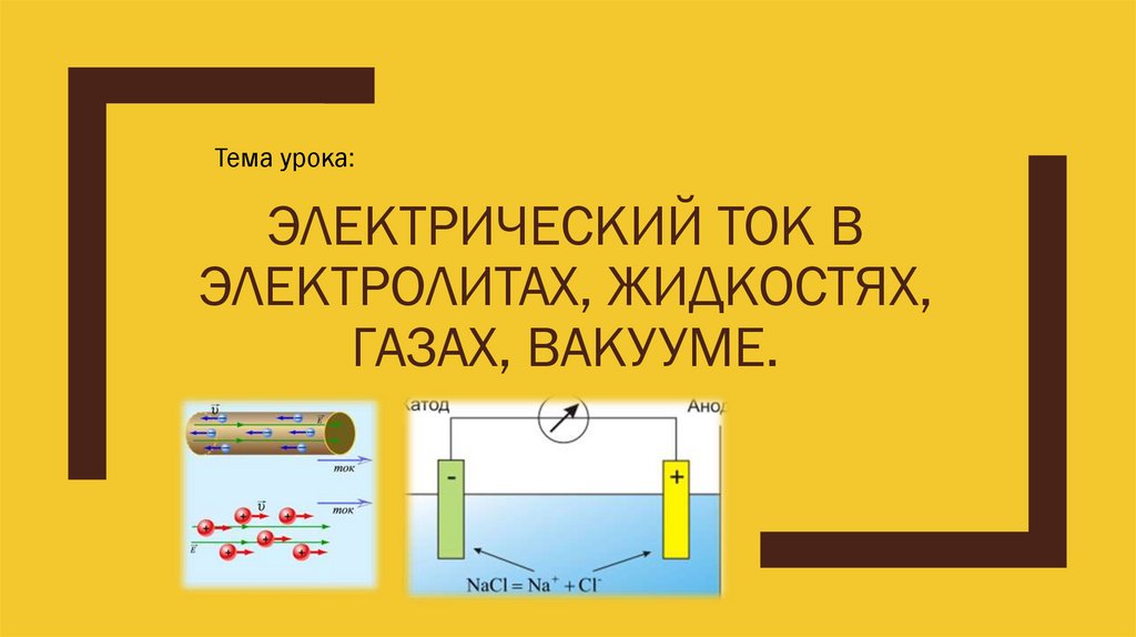 Презентация Электрический ток в электролитах, жидкостях, газах