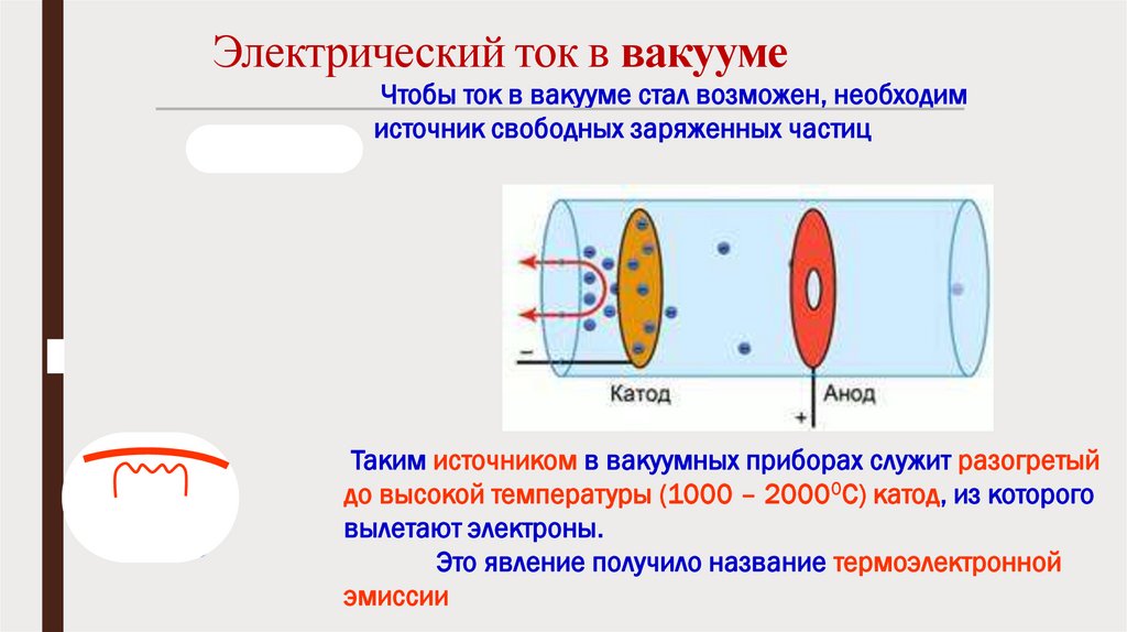 Электрический ток в вакуумеЧтобы ток в вакууме стал возможен, необходим