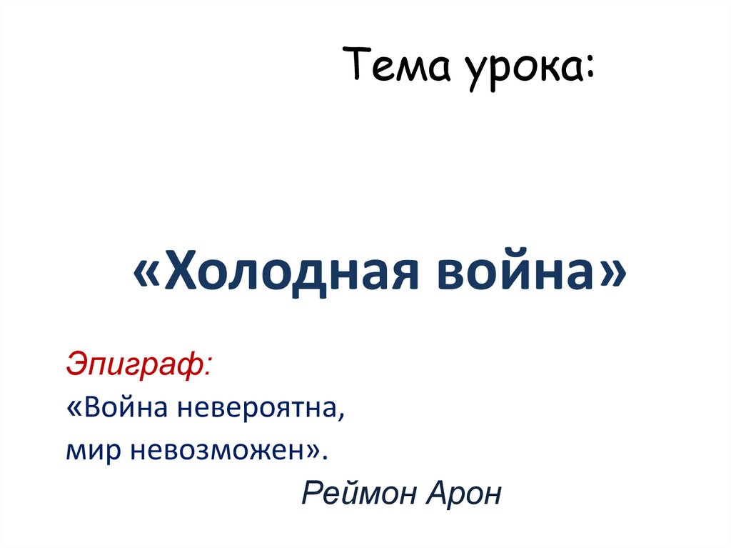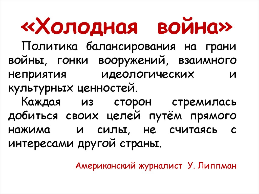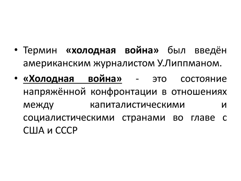 • Термин «холодная война» был введёнамериканским журналистом У.Липпманом.