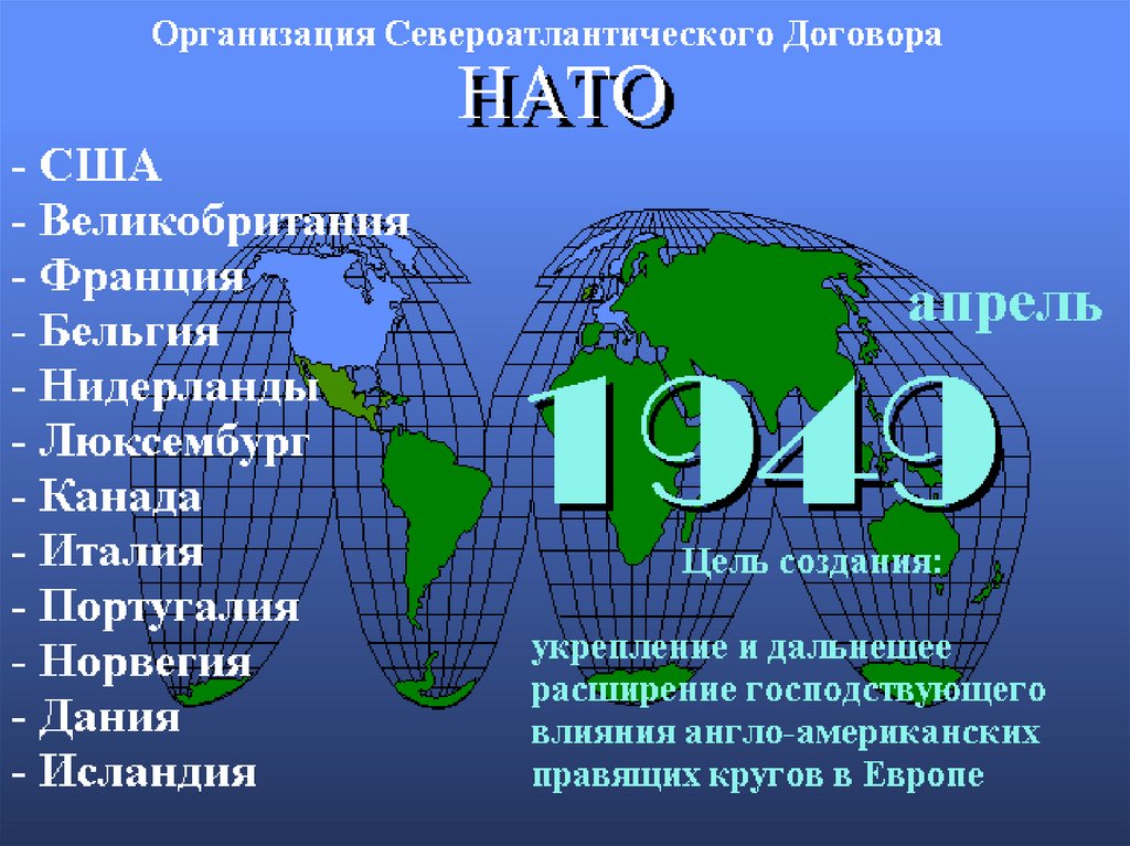 • Оказание экономической помощи странам Европы• Создание военно-политического союза западных