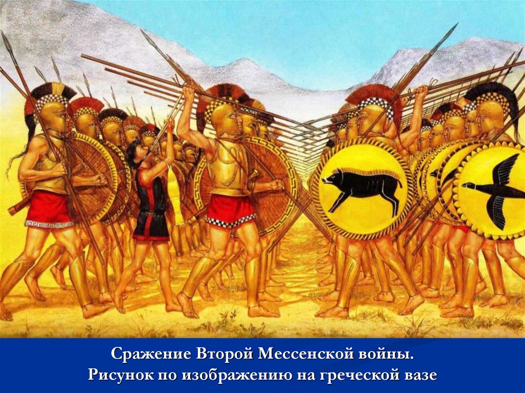 Сражение Второй Мессенской войны.Рисунок по изображению на греческой вазе
