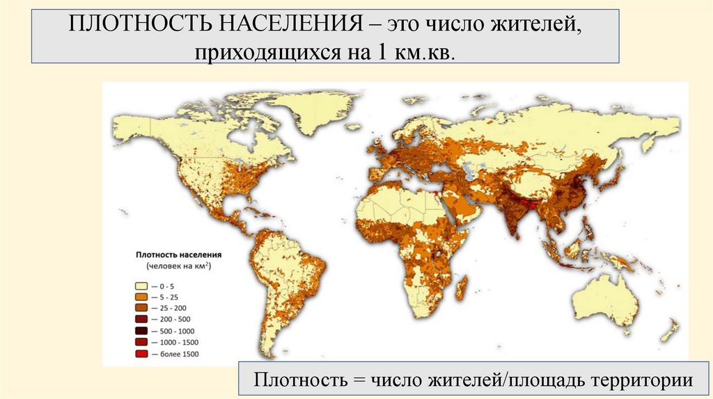 ПЛОТНОСТЬ НАСЕЛЕНИЯ – это число жителей,приходящихся на 1 км.кв.