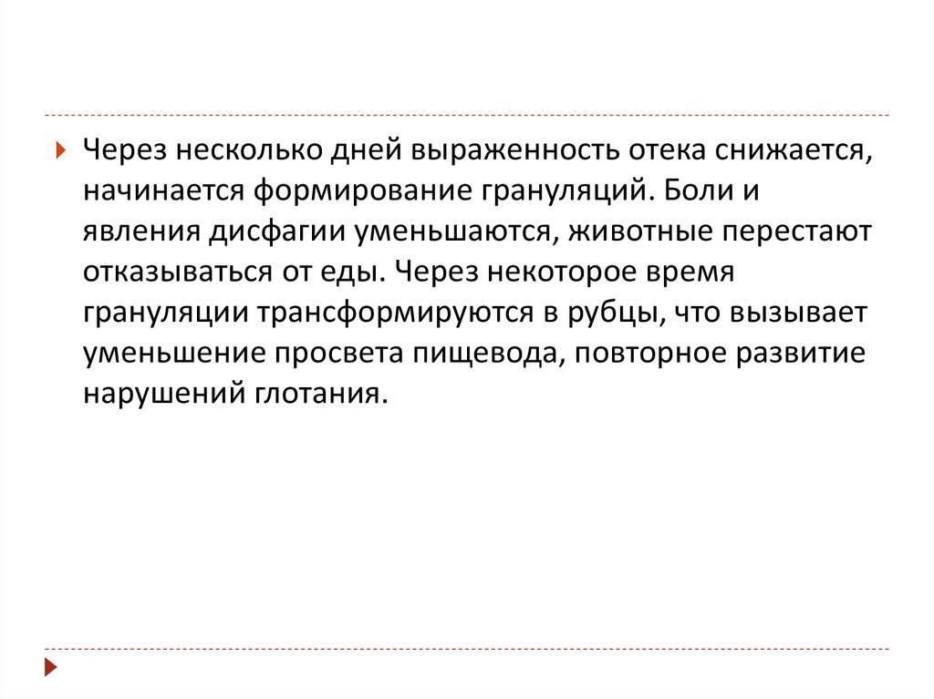 Через несколько дней выраженность отека снижается,начинается формирование грануляций. Боли и