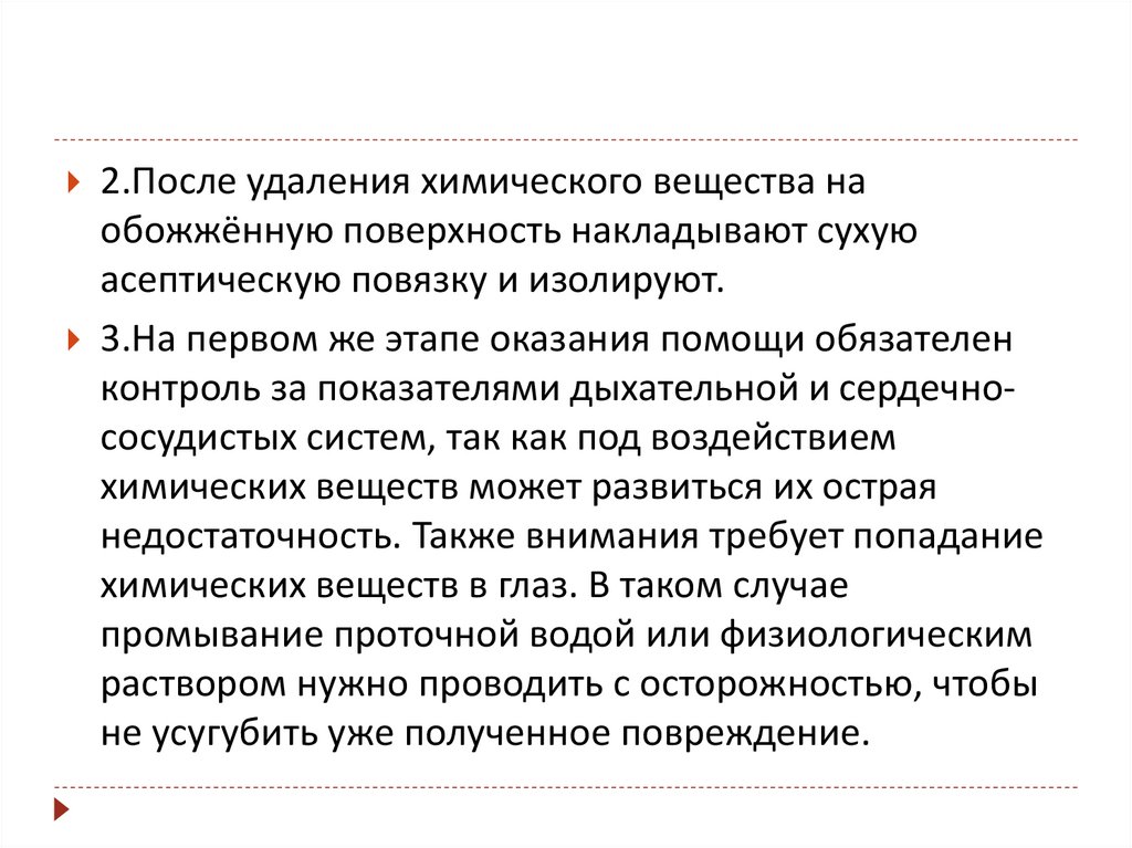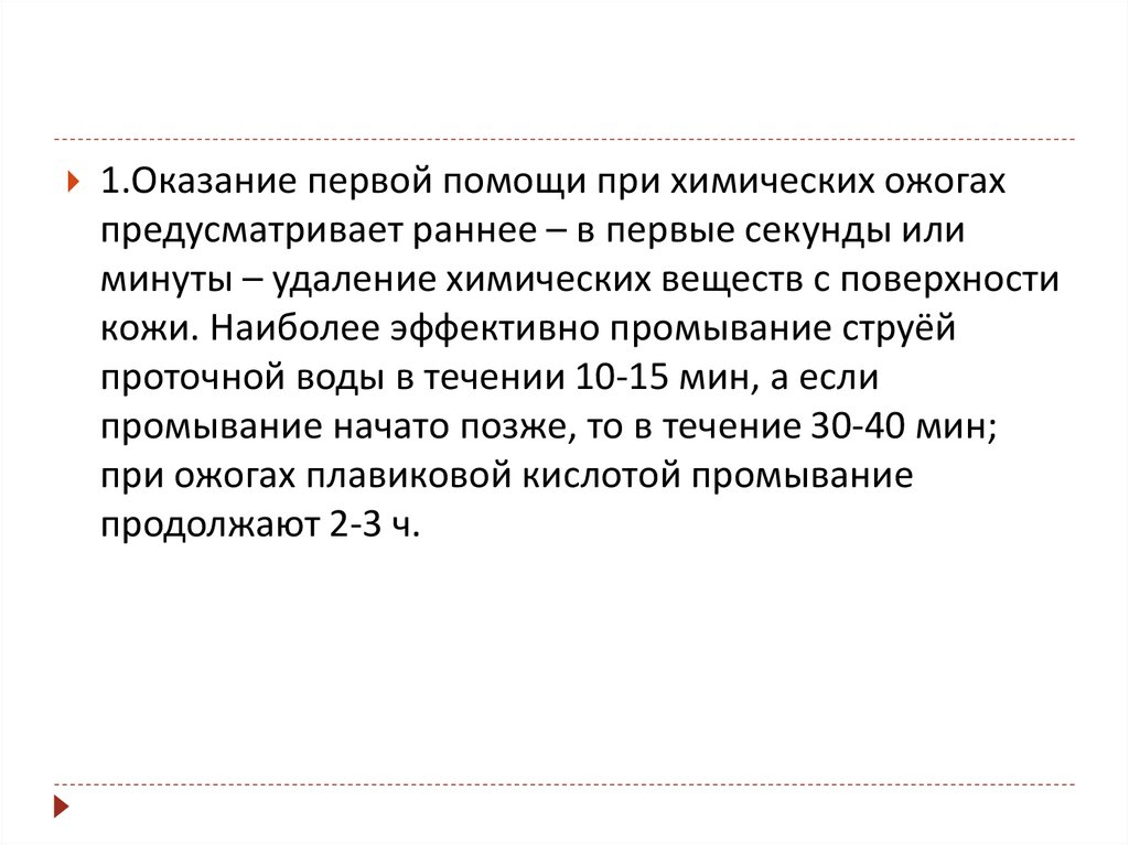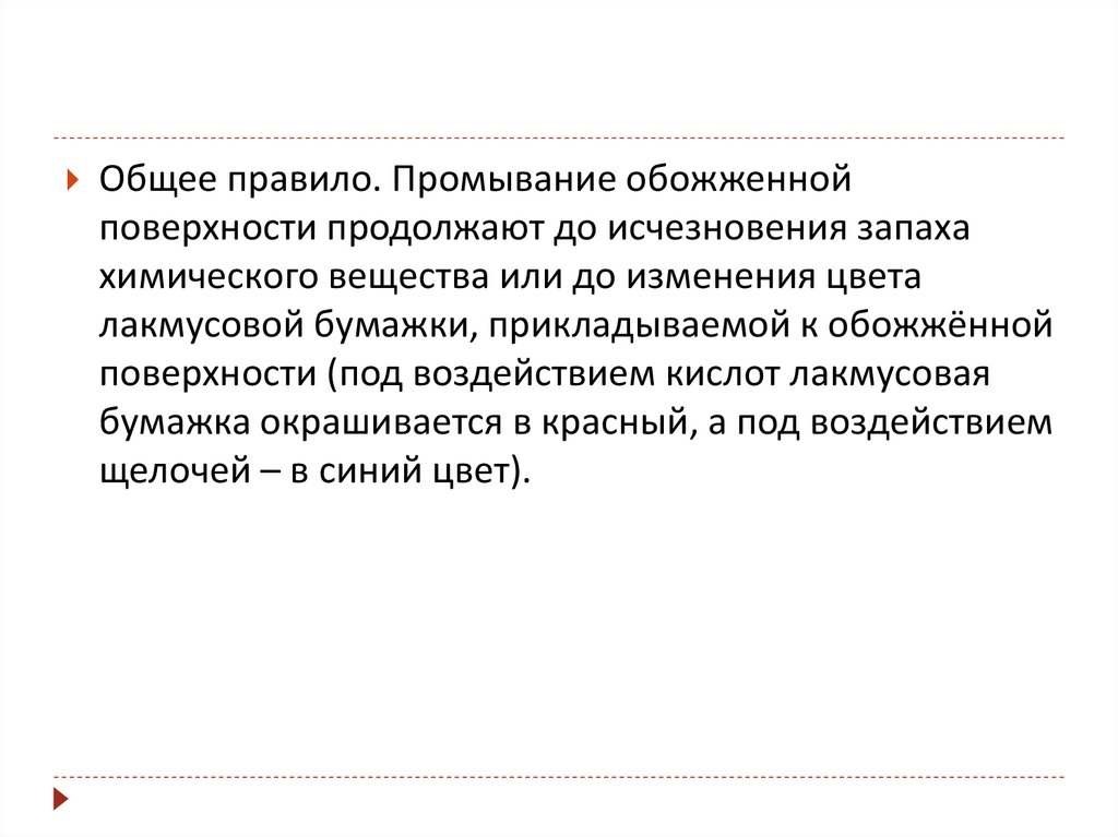 Общее правило. Промывание обожженнойповерхности продолжают до исчезновения запаха