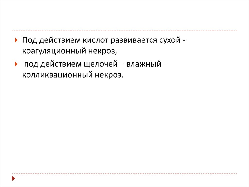 Под действием кислот развивается сухой -коагуляционный некроз,