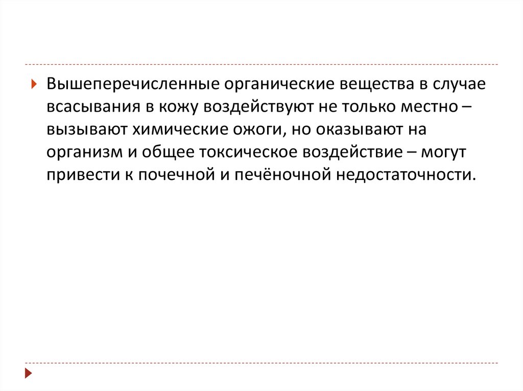 Вышеперечисленные органические вещества в случаевсасывания в кожу воздействуют не только местно –