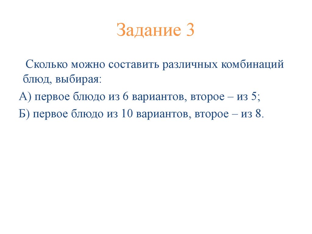 Б) первое блюдо из 10 вариантов, второе – из 8.