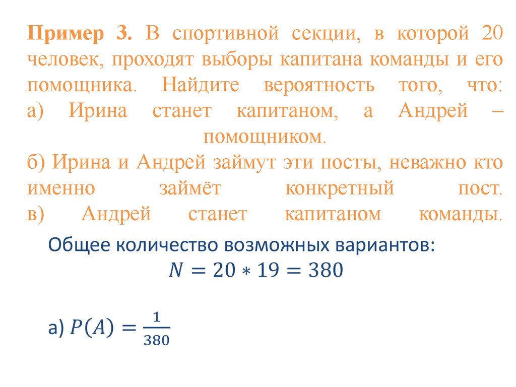 Пример 3. В спортивной секции, в которой 20человек, проходят выборы капитана команды и его