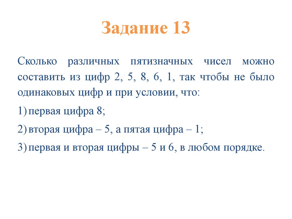 составить из цифр 2, 5, 8, 6, 1, так чтобы не было