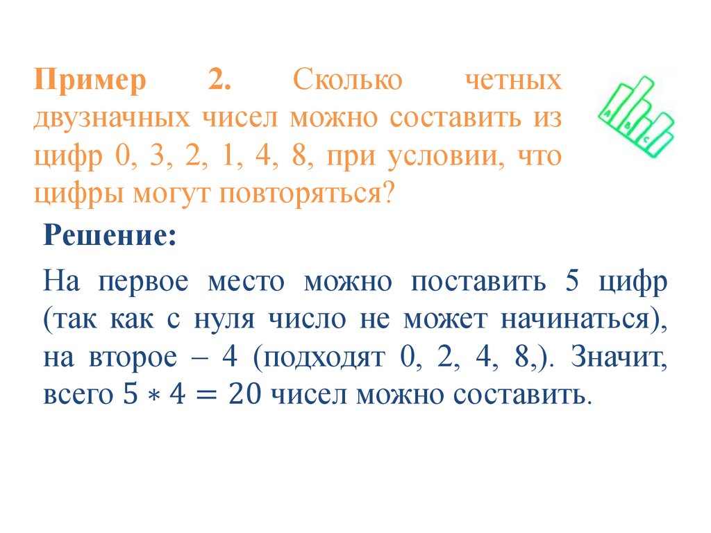 всего 5 ∗ 4 = 20 чисел можно составить.