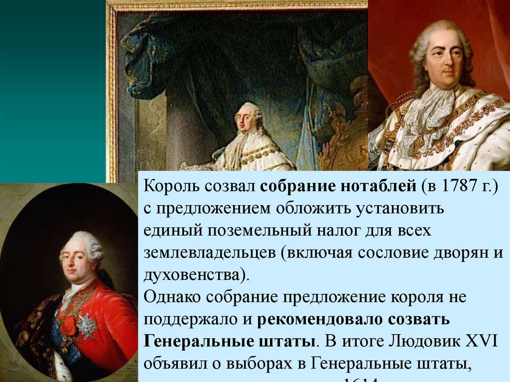 Король созвал собрание нотаблей (в 1787 г.)с предложением обложить установить