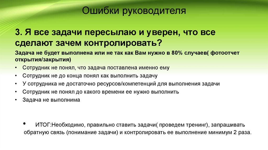 Ошибки руководителя3. Я все задачи пересылаю и уверен, что все