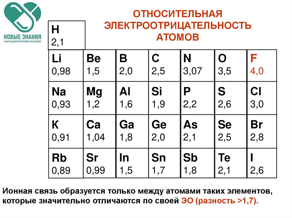 которые значительно отличаются по своей ЭО (разность >1,7).