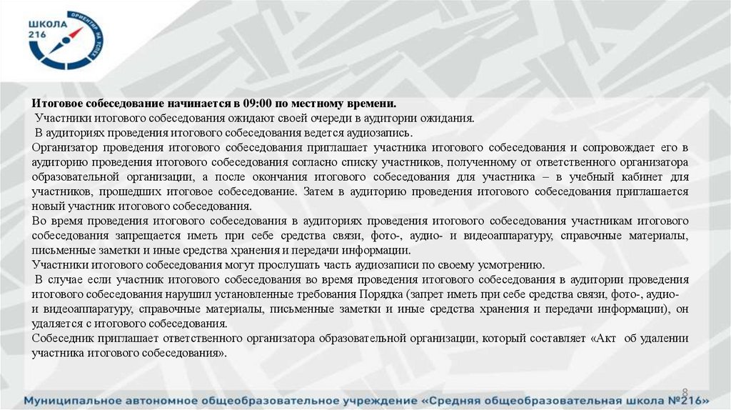 7. Итоговое собеседование проводится на базе ОО, где обучается ребёнок