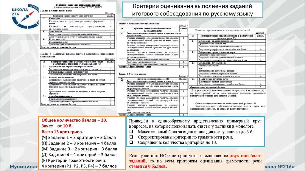 Критерии оценивания выполнения заданийитогового собеседования по русскому языку