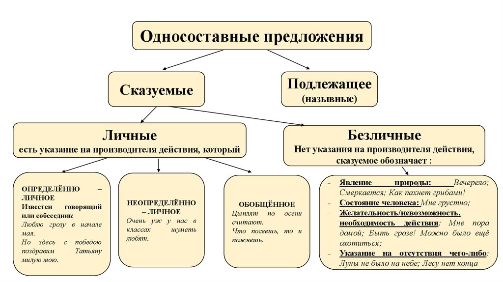 3. Виды односоставных предложений