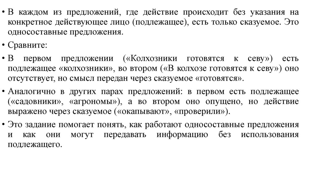 • Это задание помогает понять, как работают односоставные предложения