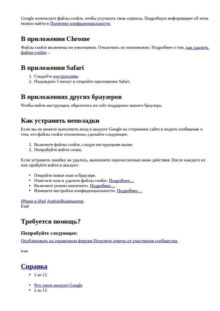 Файлы cookie могут влиять на то, как аккаунт Google взаимодействует со сторонними