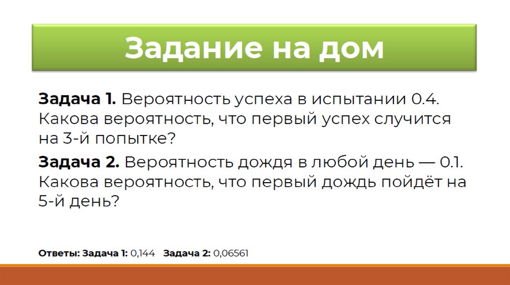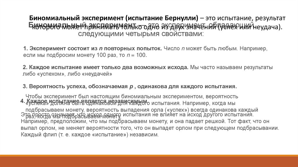 2. Каждое испытание имеет только два возможных исхода. Мы часто называем результаты