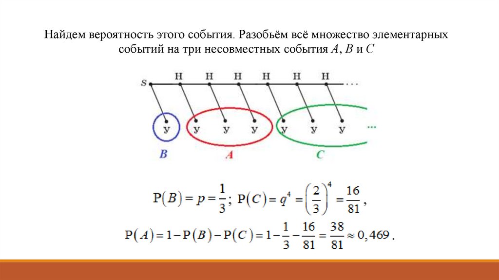 Найдем вероятность этого события. Разобьём всё множество элементарныхсобытий на три несовместных события А, В и С