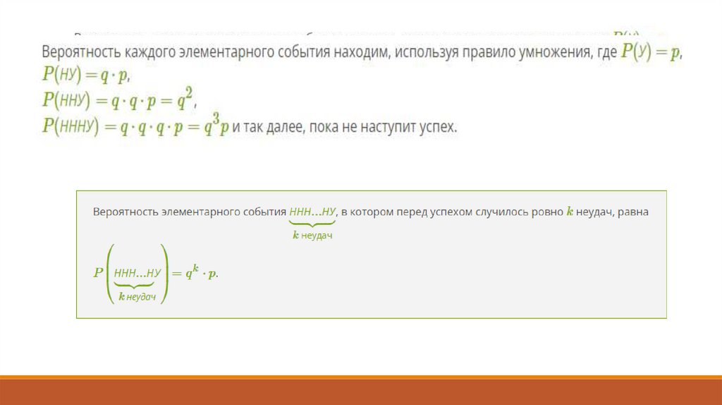 Следовательно, на долю события «бесконечная цепочка неудач» приходится вероятность 0.