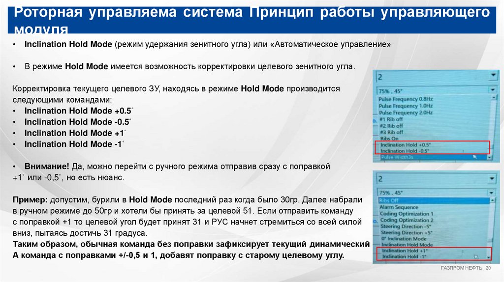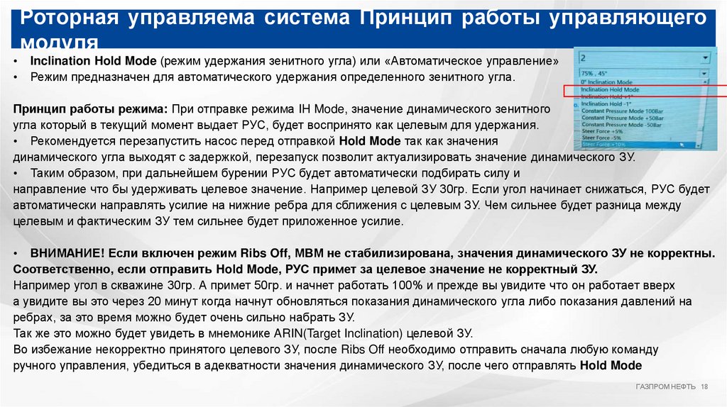 Inclination Hold Mode (режим удержания зенитного угла) или «Автоматическое управление»
