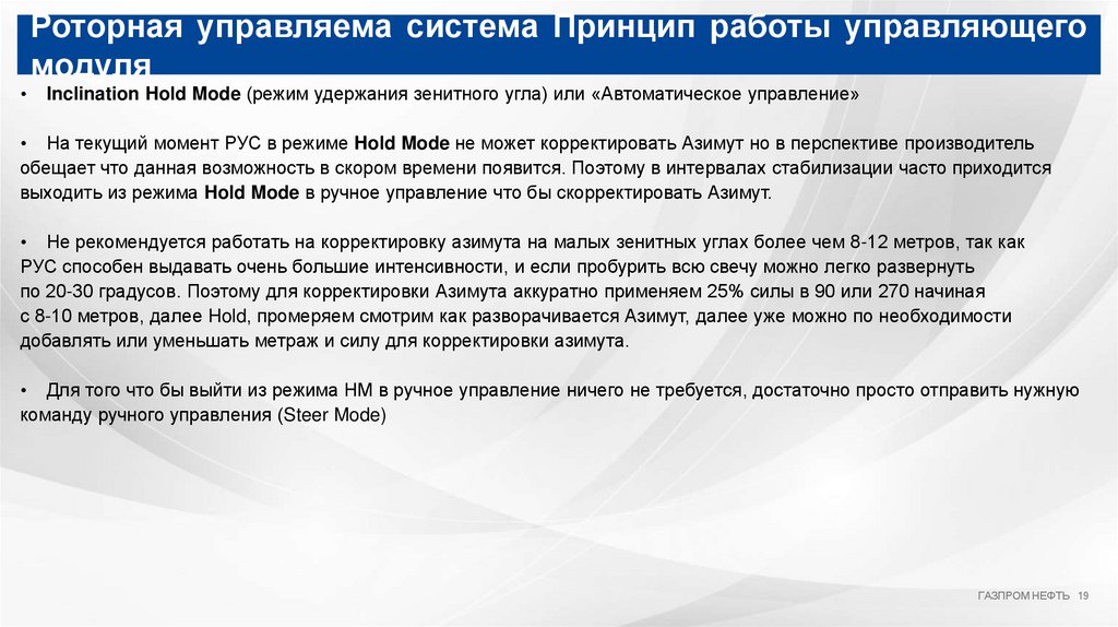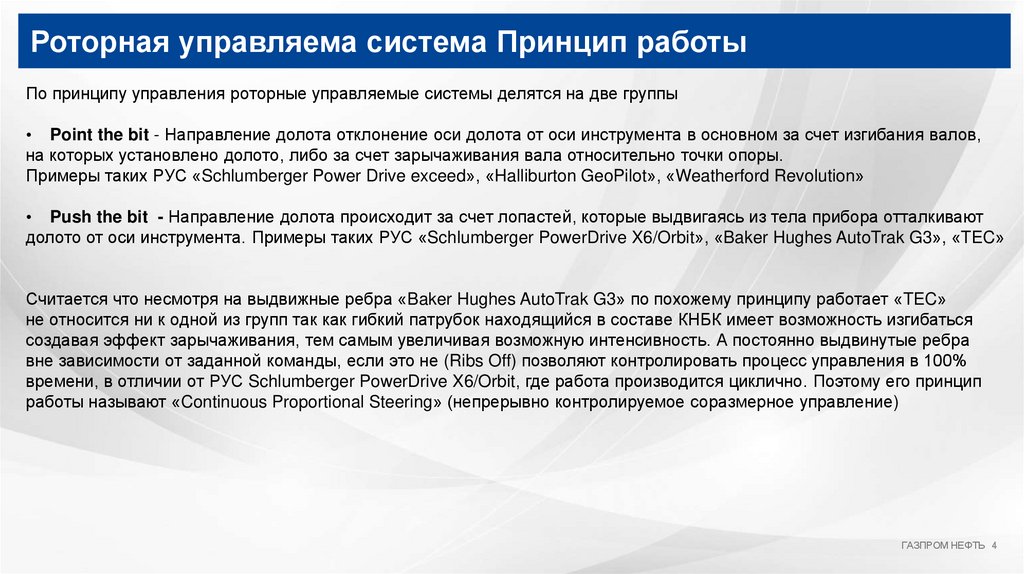 времени, в отличии от РУС Schlumberger PowerDrive X6/Orbit, где работа производится циклично. Поэтому его принцип
