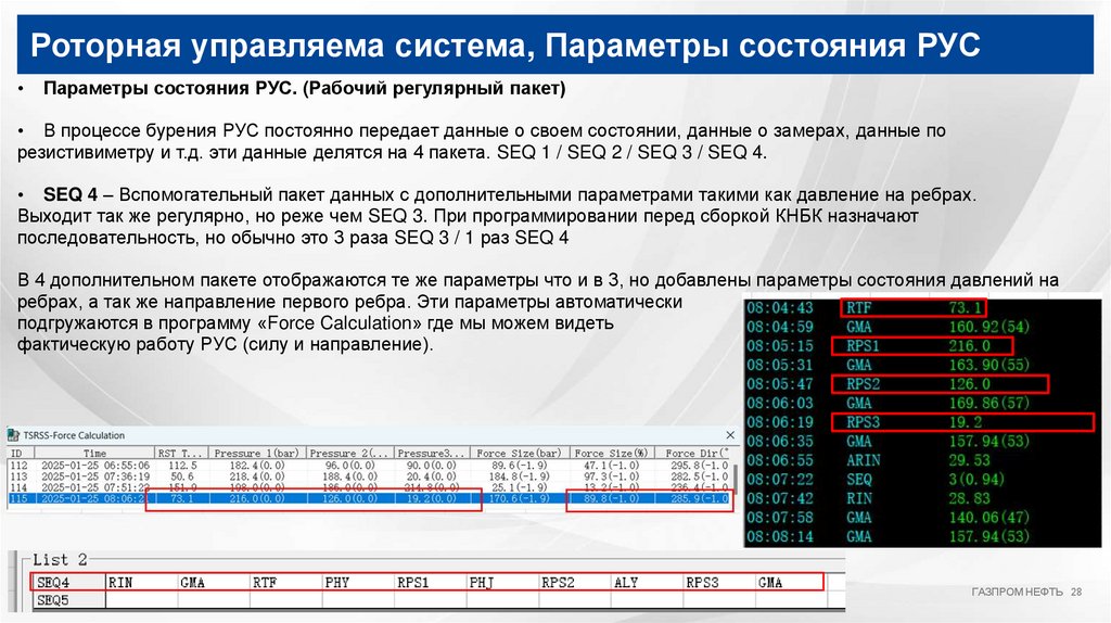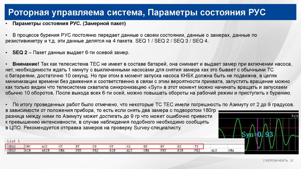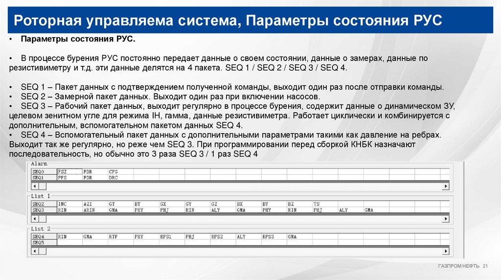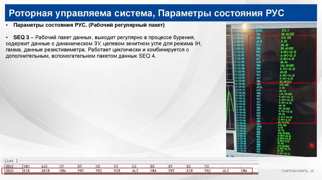 • SEQ 3 – Рабочий пакет данных, выходит регулярно в процессе бурения, содержит данные о динамическом ЗУ,
