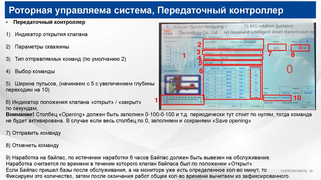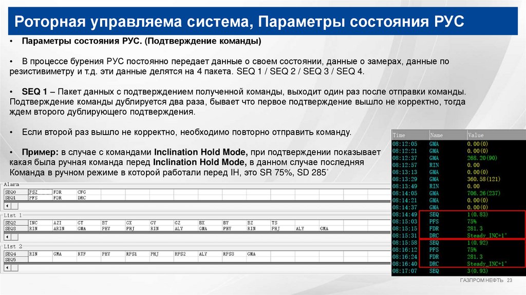После получения команды забойная система выдает подтверждение о получении команды, что дает оператору