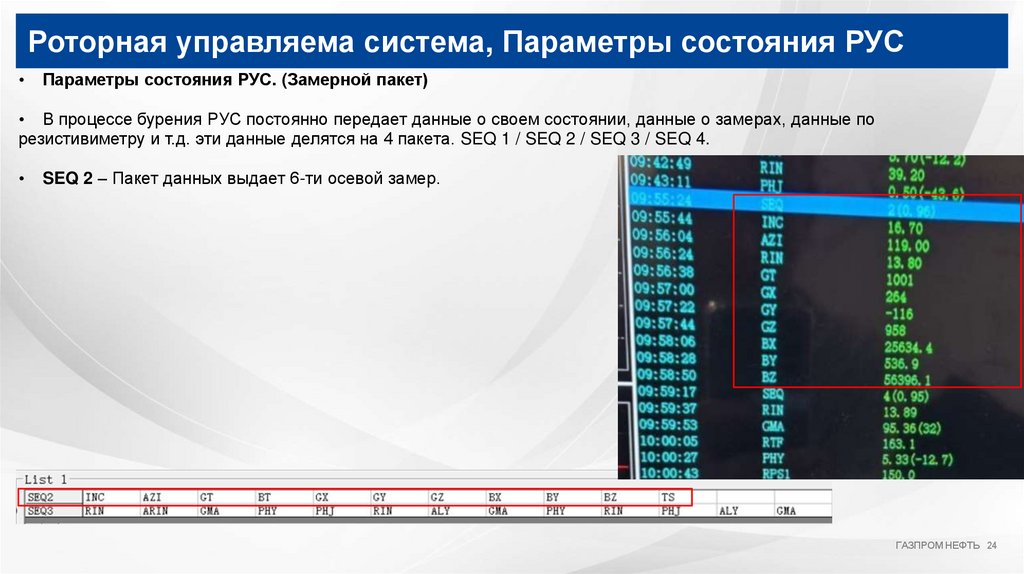 • SEQ 3 – Рабочий пакет данных, выходит регулярно в процессе бурения,