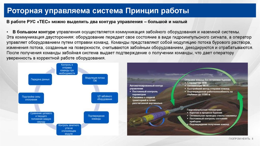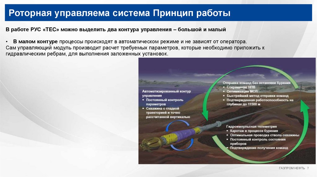 Роторная управляема система Принцип работыВ работе РУС «TEC» можно выделить два контура управления – большой и малый