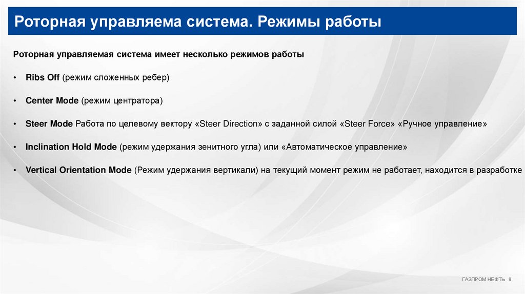 Роторная управляема система. Режимы работыРоторная управляемая система имеет несколько режимов работы