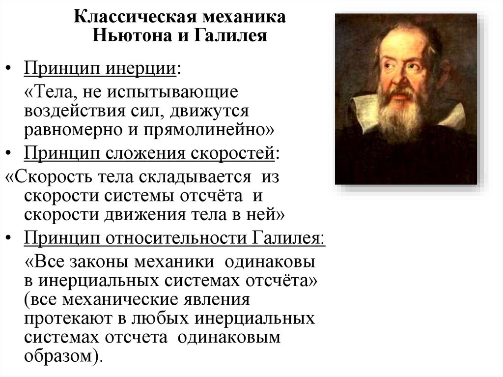 • Принцип относительности Галилея:
