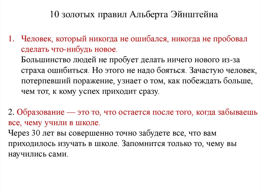 1. Человек, который никогда не ошибался, никогда не пробовалсделать что-нибудь новое.
