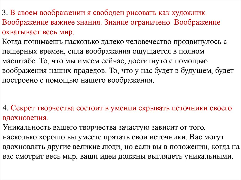 3. В своем воображении я свободен рисовать как художник.Воображение важнее знания. Знание ограничено. Воображение