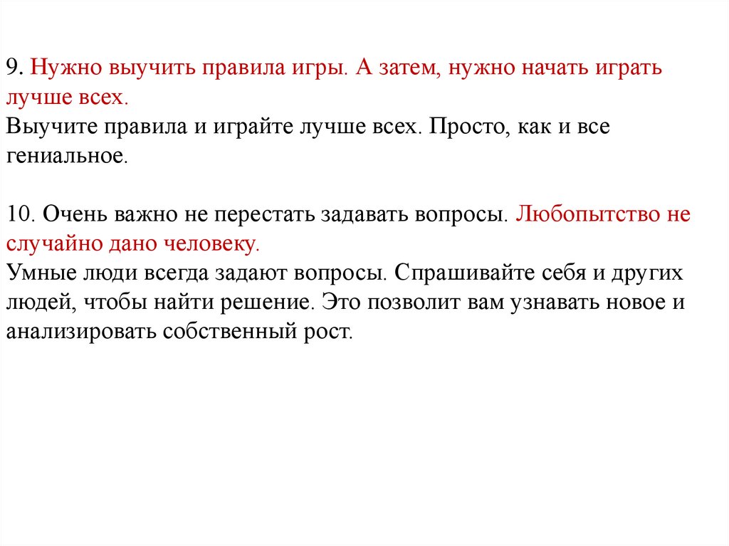 9. Нужно выучить правила игры. А затем, нужно начать игратьлучше всех.