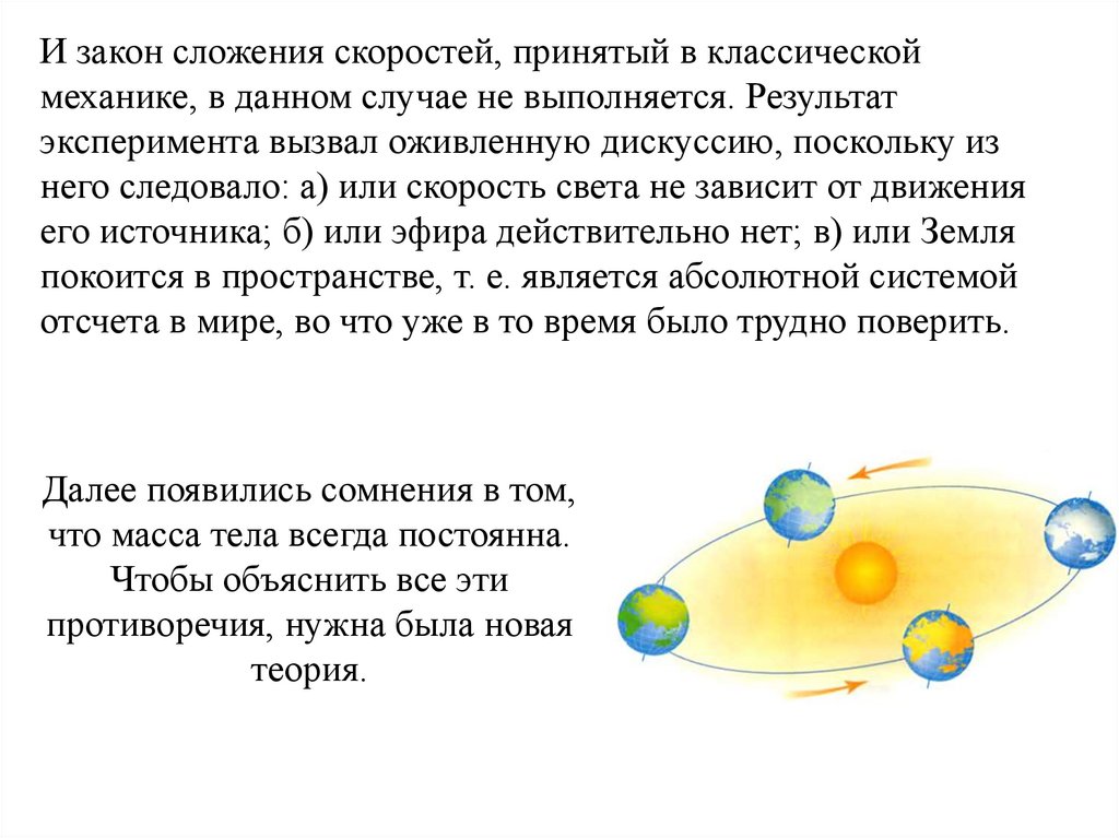И закон сложения скоростей, принятый в классическоймеханике, в данном случае не выполняется. Результат