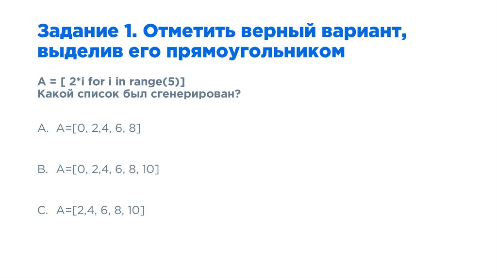 5. Задание 1. Отметить верный вариант, выделив его прямоугольником