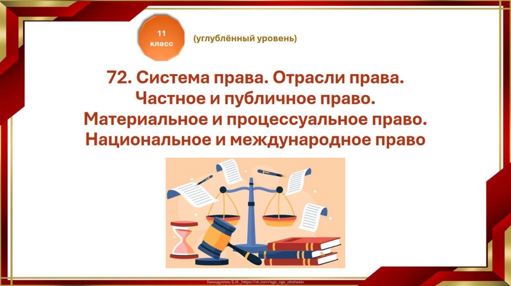 72. Система права. Отрасли права. Частное и публичное право. Материальное и процессуальное право. Национальное и международное