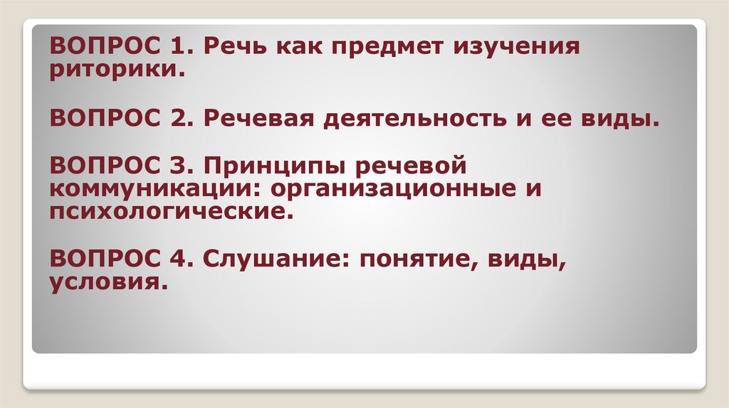 8. Вопрос 1. Речь как предмет изучения риторики.