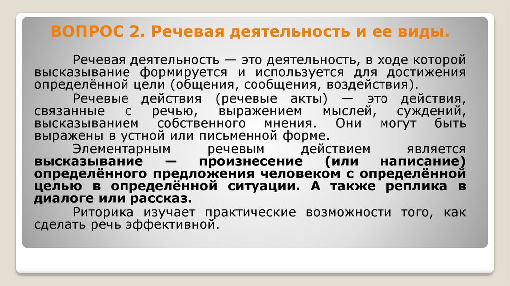 ВОПРОС 2. Речевая деятельность и ее виды.