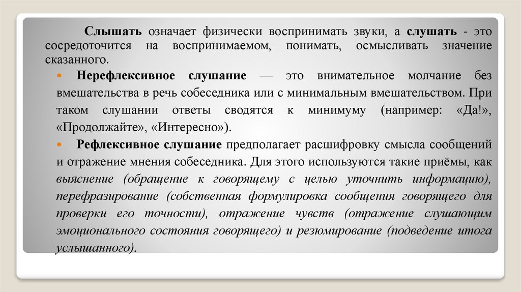 Рефлексивное слушание предполагает расшифровку смысла сообщений