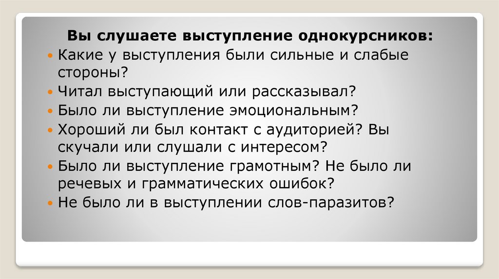 Не было ли в выступлении слов-паразитов?
