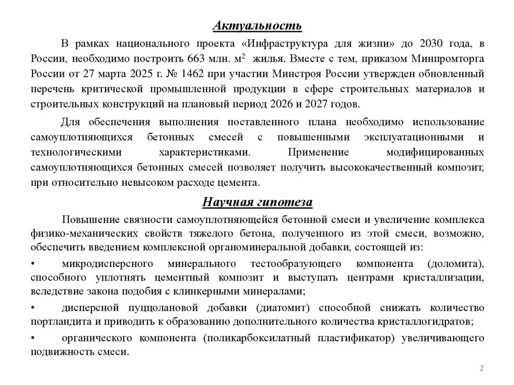 1. «САМОУПЛОТНЯЮЩИЙСЯ ТЯЖЕЛЫЙ БЕТОН С ПОВЫШЕННЫМИ ЭКСПЛУАТАЦИОННЫМИ ХАРАКТЕРИСТИКАМИ»