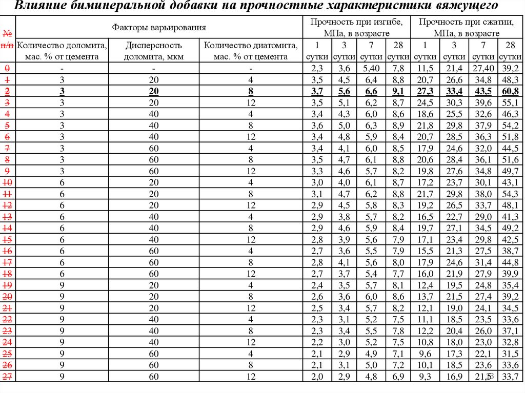 Влияние биминеральной добавки на прочностные характеристики вяжущего№