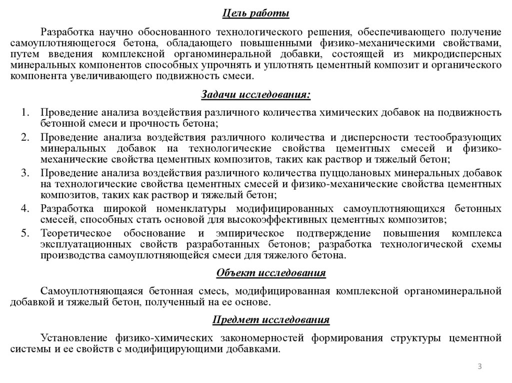 эксплуатационных свойств разработанных бетонов; разработка технологической схемы
