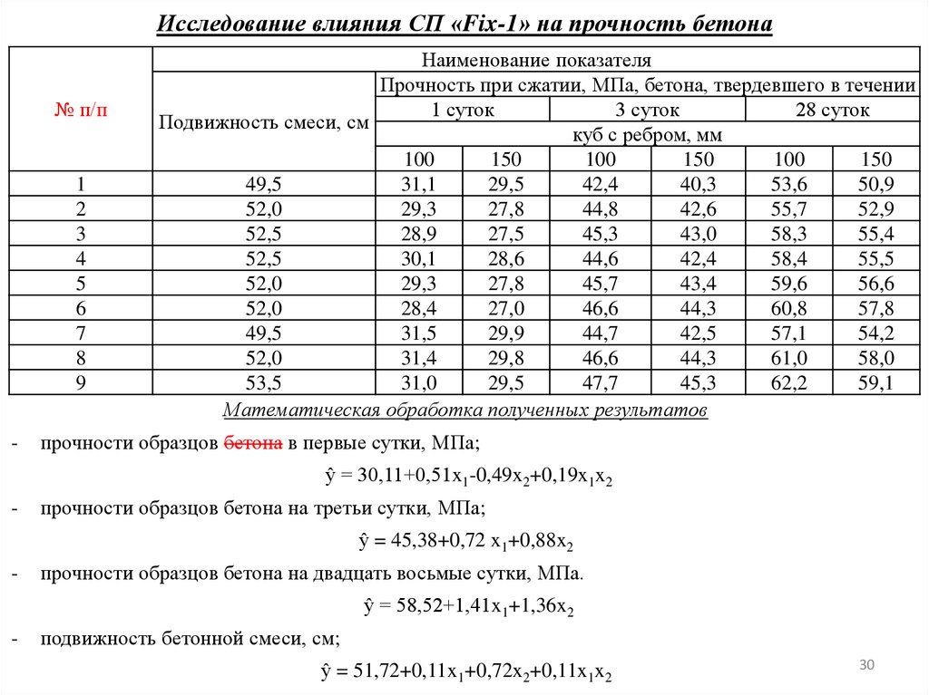 3. Проведение анализа воздействия различного количества пуццолановых минеральных добавок