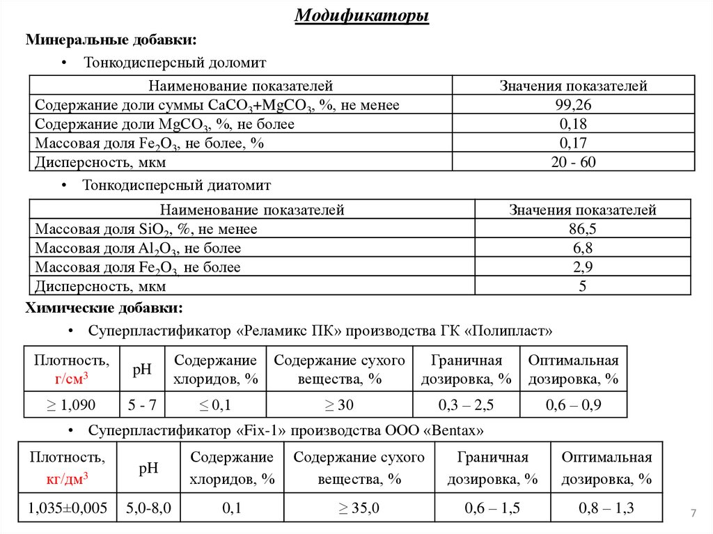 4. Разработка широкой номенклатуры модифицированных самоуплотняющихся бетонных
