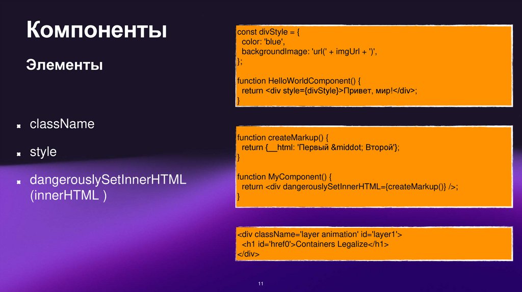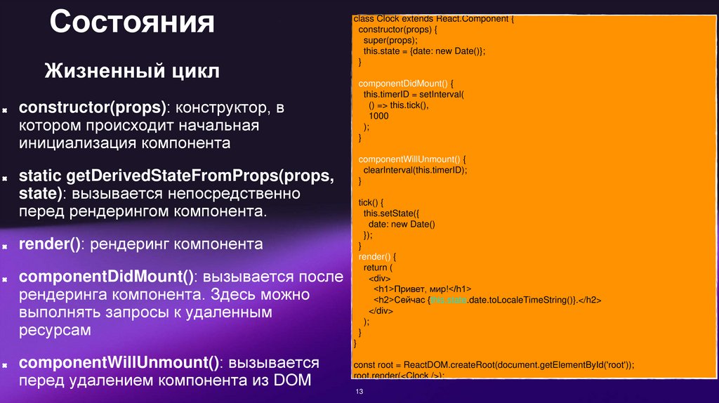 Компоненты. Рендеринг. Состояния. Библиотеки.