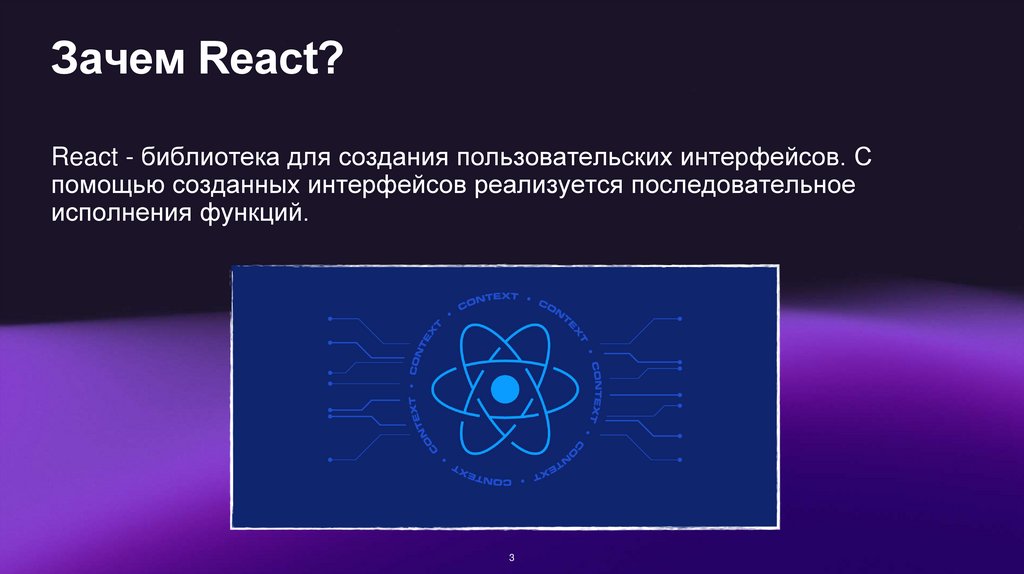 Зачем React?React - библиотека для создания пользовательских интерфейсов. С